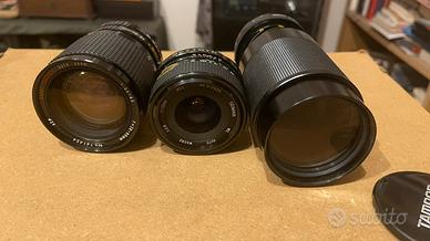 Reflex vintage con accessori varii obbiettivi ficali variabili. La canon metallizzata va testata accende ma nn mistra display.