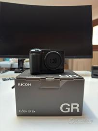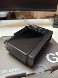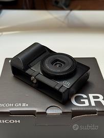 Vendo per cambio tipologia, bellissima ricoh GR IIIx, fotocamera comodissima da portare sempre con sé. Lente 40mm equivalente. Condizioni pari al nuovo, nessun segno di usura particolare. Vendo insieme a grip per pollice, grip per mano stampato in 3D, e due batterie aggiuntive compatibili, con carica batteria con 3 slot. Unica piccola pecca, è che mancano le alette che si richiudono sulla lente quando si spegne, per questo ho messo un tappo davanti, ma questo non intacca in nessun modo la funzionalità.