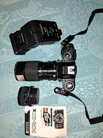Vendo splendida fotocamera reflex analogica Ricoh KR-10X degli anni '80, perfettamente funzionante e completa di tutto il necessario per iniziare a scattare su pellicola. La macchina utilizza l'innesto Pentax K, sinonimo di qualità e versatilità.Il kit include: