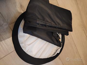 riflettore di luce naturale con sua custodia. presenta un piccolo taglietto che non incide sul suo utilizzo. dimensioni aperto: 90x60