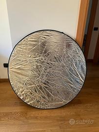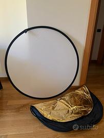 Descrizione: Riflettore fotografico 5 in 1 marca Neewer. Include pannello diffusore traslucido e copertura reversibile con tre superfici riflettenti: bianco, oro e argento. Ideale per creare diversi effetti di illuminazione nelle foto. Dimensioni del prodotto 80P x 80l x 80H cm Leggero e facile da usare, perfetto per fotografia e video. Come nuovo usato due volte.