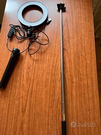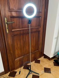 Ring light nuova. Utilizzabile a terra e sul tavolo. Dotata di supporto allungabile fino a 1,15 metri. Ben stabile a terra. Dotata di pulsante per cambiare 3 tonalitá e intensità di luce differente (vedere foto)