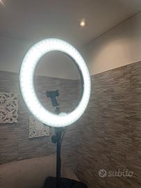 Vedo ring light NEEWER LED 48cm Esterno 55W 5600K Dimmerabile con Stativo di Luce, Ricevitore Bluetooth per Smartphone, in massma estensione alto 2,5 m circa.