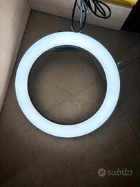 Ring Light professionale 10” con treppiede alto 59” e supporto per telefono e per fotocamera Articolo in ottime condizioni, perfettamente funzionante. Usato poco, senza difetti evidenti (visibile in foto). Dotato di 40 modalità RGB e 13 livelli di luminosità, ideale per foto, video, trucco e contenuti social. Vendo per inutilizzo. Spedizione veloce Scrivimi per info!