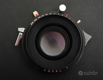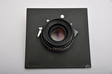Obiettivo per banco ottico per sinar 4x5 180 mm f= 5,6 lenti pulite otturatore preciso da 1 sc.a 400 .Porta una piastra per Sinar .