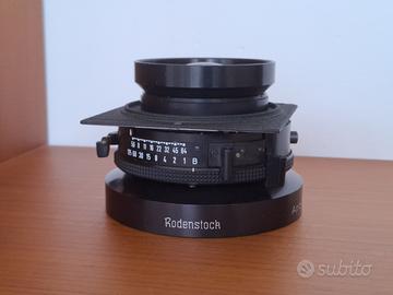Vendo obiettivo per banco ottico 8x10" Rodenstock Apo Sironar W 210 mm f5.6, montato su otturatore Prontor. Trattasi di un obiettivo molto ricercato e di grande pregio: il suo cerchio immagine di 352mm (80° di copertura) consente ampi movimenti nel formato 8x10", diversamente dai 210mm "classici". Questo esemplare è ancora più raro in quanto è marchiato Linhof, elemento che rappresenta una certificazione di eccellenza dell'esemplare in questione. L'obiettivo è in ottime condizioni generali, lenti pulite e otturatore perfettamente funzionante. Visto il valore e la rarità dell'oggetto in questione preferisco non spedire. L'obiettivo è visionabile a Milano o in provincia di Varese.