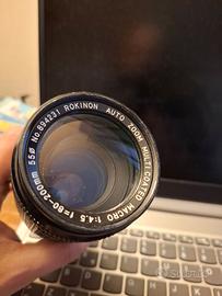 obiettivo vintage Rokinon MC Auto Zoom 135-200mm f/3.5, attacco PK/A (compatibile Pentax K analogico e digitale, pieno controllo diaframma anche dalle moderne Pentax).