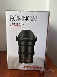 Come da titolo vendo per inutilizzo ottica cinematografica Rokinon (rebrand americano di samyang) modello 35mm T1.5 VDSLR AS UMC II, montato sulla macchina fotografica per provarlo e rimesso via.
