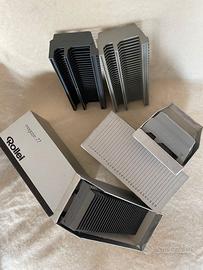 4 caricatori 6x6 Rollei . 2 con custodia in cartone originale e 2 senza custodia. uno solo è Malinverno. perfetti