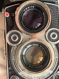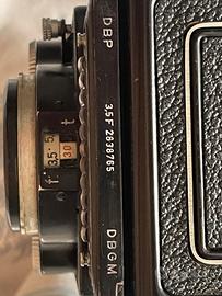 Rolleiflex 3,5F - seriale 2838765 - mod. 3 type 3/4 Carl Zeiss Planar 75mm La Rollei TLR biottica e' funzionante ed in buono stato e vetri puliti ma con tempi lughi dell'otturatore ( sotto 1/15 s) da revisionare per scarso e prolungato inutilizzo Apparecchio dotato di custodia in cuoio e ctracolla originale con ganci a coccodrillo.
