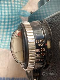 Corredata con custodia originale in cuoio con frontale di chiusura rimovibile, tappi a baionetta, tracolla agganci coccodrillo, esposimetro funzionante sincronizzato tempi/diaframmi