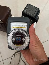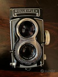 Vendo fotocamera Rolleiflex Carl Zeiss Tessar 1:3.5 f= 75 mm + Lunasix + custodie in pelle originale + accessori. Le pellicole sono in regalo, in quanto parte integrante della fotocamera, ma sono scadute. La macchina è completa e scatta, non è stata testata con pellicola.