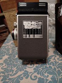 analogica di medio formato. utilizza pellicole in formato 120 per produrre 12 fotogrammi quadrati 6x6cm