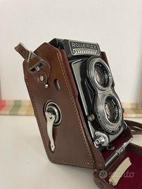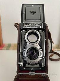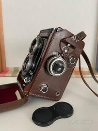Ottime condizioni. Unica imperfezione, ma facilmente risolvibile a detta di un riparatore qualificato: pulsante di scatto bloccato. Custodia in cuoio. Libretto di istruzioni originale in francese. Spese di spedizione non comprese.