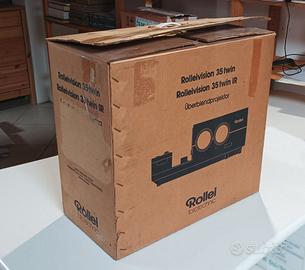 ROLLEIVISION 35 TWIN – Proiettore diapositive per dissolvenza incrociata, completo dei 2 obiettivi Heidosmat 1:2,4 f= 90 mm. e di libretto di istruzione. Ottica e meccanica perfette, pulsantiera comandi da riparare. Imballo originale.