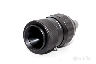 RONDO DUPLICATOR Tubo Duplicatore di Fotogrammi di Pellicole 8 e Super 8 per Reflex con Innesto T Mount e Adattatore per Innesto a Vite M42 con Distanza Focale Variabile 8/Super 8 Film Frame Duplicator con Custodia Originale OGGETTI COMPRESI RONDO DUPLICATORE ADATTATORE T-M42 TAPPI ORIGINALI CUSTODIA ORIGINALE STATO DEGLI OGGETTI DUPLICATORE IN CONDIZIONI OTTIME. SEGNI D’USO PRESSOCHE' ASSENTI. DESCRIZIONE Il RONDO DUPLICATOR, è un duplicatore di fotogrammi di pellicole formato 8 e Super 8 per reflex. Utile per duplicare fotogrammi su pellicola (con fotocamera analogica) o digitalizzarle (con fotocamera digitale). Si collega alla fotocamera tramite adattatore con attacco a T-Mount. L'altra estremità è predisposta per contenere la pellicola da fotografare (duplicare). Il duplicatore ha un obiettivo interno con apertura fissa e una distanza di messa a fuoco variabile per mettere a fuoco l'immagine sul piano focale della reflex. *** VEDI GLI ALTRI ARTICOLI FOTOGRAFICI CHE HO IN VENDITA ***