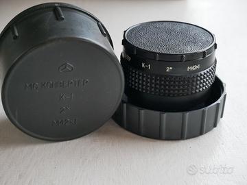 Vendo obiettivo catadiottrico Rubinar di fattura russa 500 f/8 con attacco a vite M42 in condizioni perfette. Nella vendita sono inclusi: paraluce a vite 2 filtri anello adattatore da M42 a Canon EOS duplicatore di focale 2x a vite m42