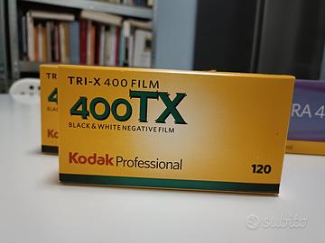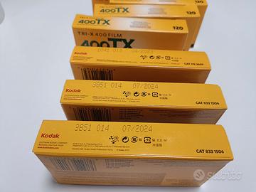 vendo per inutilizzo 7 confezioni di pellicola 120, cinque Kodak Tri-x 400 due Kodak Portra 400, scadenza 2023/2024 ma perfettamente conservati. prezzo 45 euro a confezione. Possibilità di spedizione