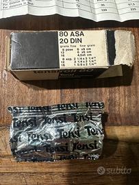 Rullino fotografico Tensi roll80 scaduto il 1975. Ancora sigillato nella busta. Completo di scatolina (inevitabili segni del tempo) e istruzioni diaframmi e tempi otturazione.