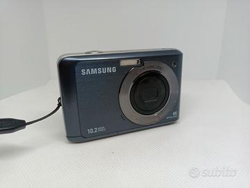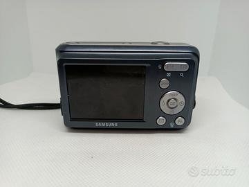 Fotocamera Samsung ES20 Funzionante con due pile ricaricabili da 1.5V (non incluse), il funzionamento con pile differenti non adeguate non è garantito. Flash funzionante. Si riceve ciò che è in foto. Tipo: Fotocamera Digitale Compatta. Obiettivo: Zoom 4x (34mm - 136mm equivalenti), apertura f/2.8 (grandangolo) - f/6.1 (teleobiettivo). Risoluzione Sensore: 3648 x 2736 pixel. Sensibilità ISO: 80 - 1600. Display: LCD da 2.50 pollici. Video: 640×480 pixel a 30fps. Memoria: Slot per SD Card. Alimentazione: 2 batterie AA. Funzioni: Flash integrato, modalità macro, autoscatto. Disponibili foto di esempio. NO GARANZIA, NO RESI.