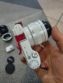 Fotocamera mirrorless Samsung nx1000 in ottime condizioni con obiettivo samsung 20-50 mm e flash originale samsung. Fornisco insieme alla fotocamera l'adattatore per utilizzare lenti con attacco canon ef, intervallometro, kit lenti aggiuntive macro/grandangolo da 52mm, adattatore per filtri a vite 40,5-52mm.