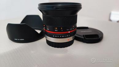Vendo obbiettivo grandangolo Samyang 12 mm F2 NCS CS attacco Micro 4/3 nero compatibile con fotocamere con sensore micro quattro terzi. L' obbiettivo si presenta in ottime condizioni come da foto, qualche lievissimo segno d'usura sulle plastiche. Completo di scatolo, tappi e paraluce originali, ma non più in garanzia.