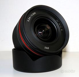 Samyang 12 mm F2 per fujifilm perfetto pari al nuovo completo di tappi paraluce e custodia manca la scatola