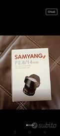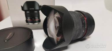 Vendo obiettivo Samyang 14mm F2.8. L'obiettivo è in condizioni pari al nuovo. - Obiettivo grandangolare con attacco Canon - Apertura massima f/2.8 - Lunghezza focale 14mm - Messa a fuoco manuale