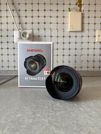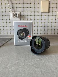 Vendo obiettivo ultra-grandangolare Samyang 14mm f/2.8 con Autofocus per baionetta Nikon F. Si tratta della versione moderna con AF, molto più precisa e nitida della vecchia versione manuale.