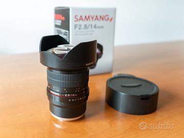Vendo obiettivo grandangolare Samyang 14mm f/2.8 con attacco Sony E-Mount, in perfette condizioni e usato solo poche volte. In vendita causa inutilizzo.