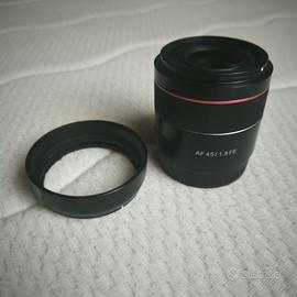 vendo lente Samyang 45mm 1.8 FE per Sony full frame. perfettamente funzionante in ottime condizioni estetiche. con paraluce.