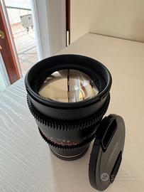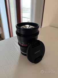 Vendo Obiettivo Samyang 85mm T1.5 E-Mount con ghiere focus rack cine per videomaker, modello raro fuori produzione, attacco Sony E-Mount.