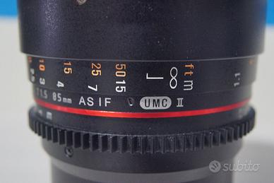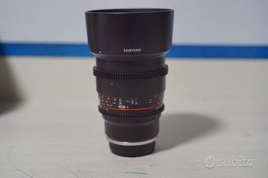 Vendo Samyang 85mm T1.5 serie VDSLR II. Ottica cinematografica eccellente, rinomata per il suo bokeh cremoso. Essendo la serie II, offre gestione flare e contrasto superiori. Dotata nativamente di ghiere dentate per Follow Focus e diaframma de-clickato per riprese video fluide. Condizioni eccellenti: lenti prive di graffi o polvere, ghiere fluide e precise. Inclusi tappi originali e scatola. Ideale per cortometraggi e ritratti. per domande o richieste chiedete pure
