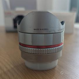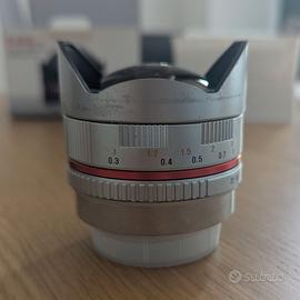 Samyang 8mm f2.8 fish-eye attacco Fujifilm