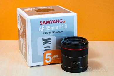 Vendo Samyang AF 45mm F1.8 FE come nuovo completo di tutta la dotazione, usato veramente poco, disponibile a qualunque prova su Roma centro o nord.