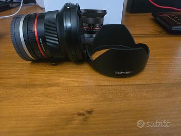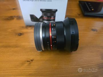 Vendo obiettivo Samyang F 2.0 12 mm con attacco E mount adatto per macchine Sony tipo la serie alpha. Si tratta di una lente a focale fissa (non è una lente zoom), grandangolare, perfetta per paesaggistica o fotografia urbana, ma anche fotografia notturna in quanto è molto luminoso. L'obiettivo è usato, ma in ottime condizioni in quanto è stato usato pochissime volte con una sony a6300 ma non è più in garanzia. Ha la confezione originale seppur leggermente rovinata e il paraluce. Posso spedire giovedì e venerdì. Essendo la lente in ottime condizioni non fate offerte al ribasso perchè non rispondo.
