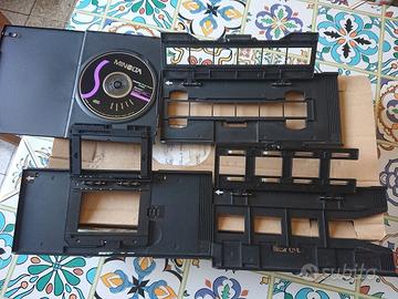 - Cinque piastrine di diffusione illuminazione Scanhancer, di cui quattro per diapositive in telaio 35mm ed una per negativi/diapositive 6x9. Sono rare e costose, perché fatte di un polimero speciale che diffonde la luce evitando qualsiasi tipo di concentrazione/riflesso/disturbo. Vanno incastrate nei caricatori. Sono ancora incellofanate.