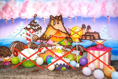 Scenografia Di Carnevale Candyland Scenario di D’aponte 280cmx500cm In ottime condizioni Senza accessori