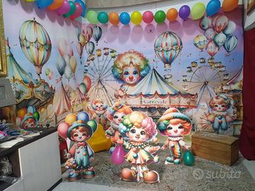 Vendesi Scenografia di Carnevale interamente creata dal sottoscritto e stampata da azienda prof su carta bianca ad alta risoluzione e saldata in modo eccezionale; la stessa è composta da due parti che misurano ( L 3,00 x H 2,50 e L 2,00 x H 2,50 ) + numero 4 sagome della stessa qualità di stampa, scontornate e applicate su polistirolo, tagliato a caldo. la scenografia, qualora venduta, dovrà essere ritirata in sede da me a Pagani e verrà consegnata arrotolata e non piegata; Chiedo per il tutto € 150,00 chi fosse interessato può massaggiarmi tranquillamente e avrà tutte le spiegazioni possibili.