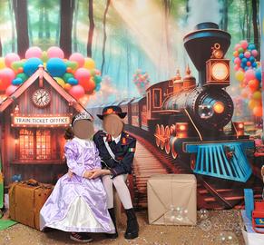 bellissima scenografia 3x2 mt raffigurante locomotiva + biglietteria