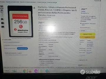 vendo mai usata e ancora imballata come da foto Manfrotto - Scheda di Memoria Professional 256GB, PCIe 3.0, 1730MB/s CFexpress tipo B, per Fotocamere Reflex Professionali e Mirrorless Avanzate .... preferibile scambio a mano a campomarino,..... 130€ PREZZO NON TRATTABILE ...DISPONIBILI OLTRE 100 OGGETTI IN VENDITA+anche articoli da ferramenta cofan al 50%/...DATE UN OCCHIATA AGLI ALTRI ANNUNCI . Le schede di memoria professionali CFexpress tipo B di livello professionale PCIe 3.0 Manfrotto combinano affidabilità e robustezza di grado industriale con prestazioni ineguagliabili. Progettate per offrire risultati ottimali nelle fotocamere reflex professionali e nelle mirrorless avanzate che richiedono velocità più elevate per le modalità di ripresa più impegnative, le schede CFexpress tipo B professionali sono state ideate per fotografi e videografi professionisti per l’utilizzo nei sistemi più recenti. Prestazioni Pro: gli elevati standard di progettazione delle schede di memoria CFexpress professionali Manfrotto consentono di collocarle tra le schede di massima qualità disponibili sul mercato, in grado di registrare video a 8K, 6K e 4K con frequenze fotogrammi elevate e velocità incredibili: velocità di lettura fino a 1730 MB/s e velocità di scrittura fino a 1540 MB/s, con interfaccia PCIe 3.0. Schede realizzate per le temperature più estreme: sia che si effettuino riprese nel caldo del deserto, nell'Artico a temperature sotto zero oppure che si lasci la propria scheda di memoria all’interno di un'auto in sosta sotto il sole, si può continuare a scattare avendo la certezza che le schede di memoria professionali Manfrotto sono state realizzate per resistere a tali variazioni estreme di temperatura. Le schede CFexpress sono adat
