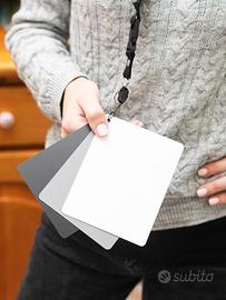 Set di schede fotografiche per bilanciamento del bianco ed esposizione, ideale per ottenere colori reali e foto più precise.