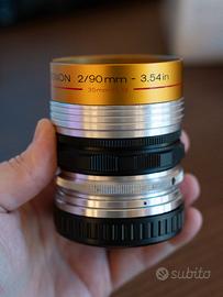 Vendo Schneider CINE-XENON 90mm f2.0 modificata per Pentax 645 film camera , con fstop aperture control e focus control tramite ghiera. Nitidissima, unica nel suo genere, modifica per essere montata su una Pentax 645 o su una Fujifilm GFX tramite adattatore.