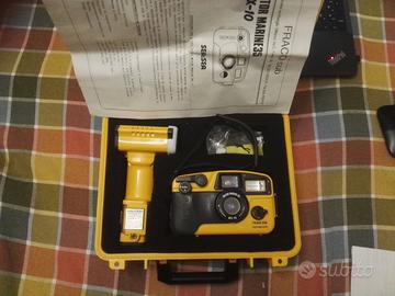 Per cessata Attivita Sub cedo pratica fotocamera subacquea compatta da 35 mm realizzata da Sea&Sea perfettamente funzionante e in pratica Borsa stagna con Kit Or nuovi di ricambio e grasso al silicone x la manutenzione. Questa macchina denota la volontà della Sea&Sea, già produttrice di eccellenti flash professionali di contrastare la Nikon sul livello professionale. In effetti la MX-10 considerabile ibrida: presenta un vantaggio rispetto alla Nikonos, la motorizzazione, e uno svantaggio nella non intercambiabilità delle ottiche che può altresì considerarsi un pregio qualora si voglia variare la focale sott'acqua, che è possibile applicando gli aggiuntivi wide o macro ( accessori acquistabili a parte) la messa a fuoco è determinata dalla profondità di apertura del campo. . Specifiche : Lente: 32mm f4.5 (4 elementi, 4 gruppi)