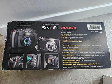 Vendo fotocamera subacquea Sealife DC1200, completa di custodia waterproof, cavi, caricatore, batteria, manuali e scatola originale. Tutto in buone condizioni. Ideale per snorkeling, immersioni e viaggi.