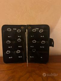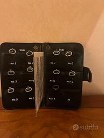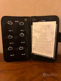 di slide per fotocamera Sekonic Studio Deluxe. - Modello L-398. - Include 11 pezzi. - Custodia in pelle nera.