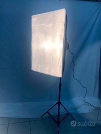 I flash sono dotati di soft box rettangolare con doppio panno , possibilità di montaggio di ombrello riflettente .