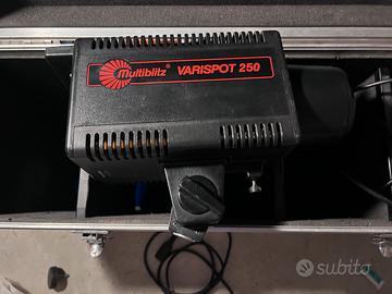 •1 × Multiblitz Varispot250 – testa flash da 250Ws con zoom di fascio luce variabile, ottima per controllo mirato della luce.