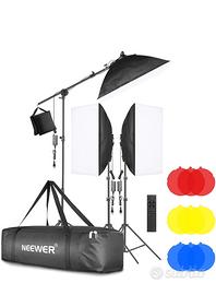 * SOFT BOX NEEWER con due lampade (vedi foto- una lampada che fa luce dall’alto e una fa luce frontale- dimmerabili), molto efficienti .. dotate di tutti i pezzi, della custodia, e ancora imballate.
