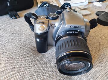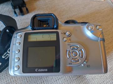 Fotocamera, obbiettivo originale,2 batterie,carica batterie, cavalletto orientabile,filtro UV, 3 schede di memoria,.borsa Canon, Scatola originale con tutti i libretti di istruzioni e i CD allegati e tutti i cavi per collegarsi.